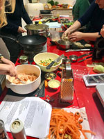 Ein gelungener Abend, an dem die Stunden wie im Flug vergingen – Dank der lebhaften Teilnahme aller Anwesenden und ihrem temperamentvollen Einsatz mit Kochlöffel und Co!!
